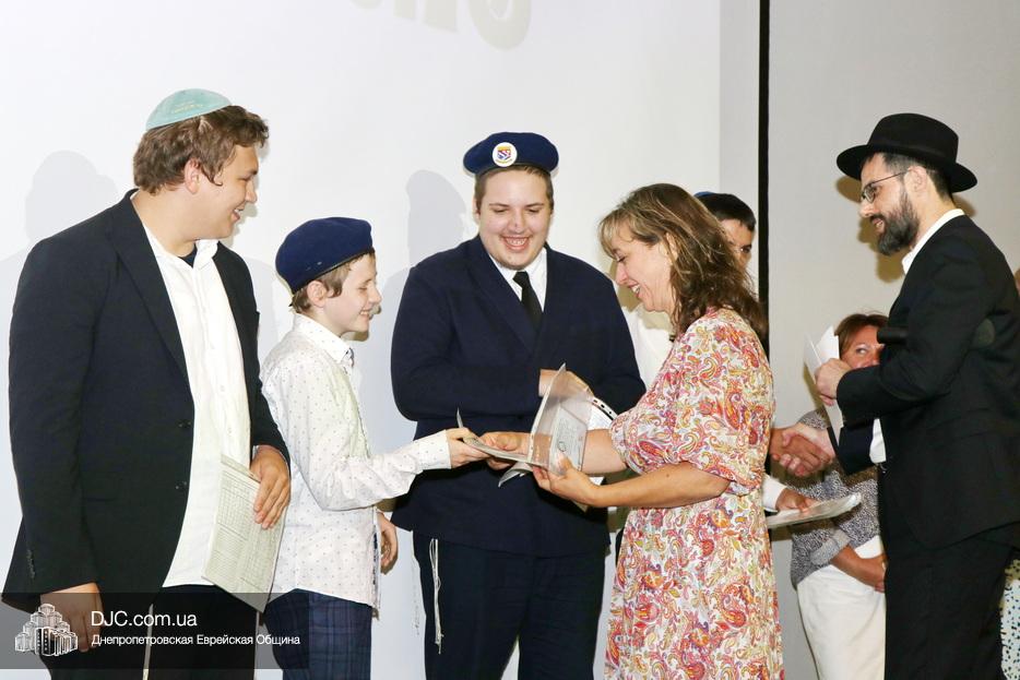 Особого чествования удостоили выпускники этого года, Шнеур Залман Лазарев, Элиезер Щербина и Яков Абрамитов, не взирая на то, что физически на момент вручения аттестатов в Днепре присутствовал только Шнеур Залман. Не обошлось и без благодарностей и подарков великолепным педагогам, которые: «научили не бояться, не сдаваться и верить в себя, знать, кто такой хасид и как это, зажигать фонари вокруг себя для других. Каждый из вас смог стать примером, вдохновившим на определенные достижения. Это вы преобразовали тонкие ростки, иногда колючие, в огромный плодовый сад», – отметили ученики.