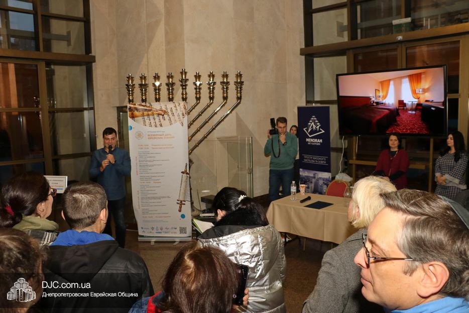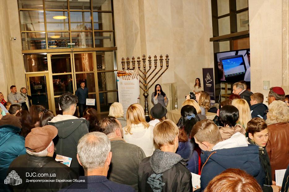Подведение итогов «Всемирного дня еврейских знаний» прошло в галерее центра «Менора» возле большой серебряной Ханукии. Выступающие, среди которых были: Второй секретарь Посольства государства Израиль в Украине, директор Израильского Культурного Центра в Днепре Илья Дубинский; Советник городского головы Днепра Олег Ростовцев; еврейский образователь Еврейского Культурного Центра «Соломоника» Ализа Рабинович; Глава представительства филиала «Сохнут-Украина» Рафаэль Хельцер; директор Украинского института изучения Холокоста «Ткума» и музея «Память еврейского народа и Холокост в Украине» доктор Игорь Щупак, подчеркнули важность проведения таких мероприятий, отметили высокий уровень проведения Дня этого года и пригласили общественность Днепра активно участвовать в проектах и программах еврейских структур города. Одновременно с этим проходила лотерея среди зарегистрированных участников Дня и каждому из выступающих была предоставлена честь вручить призы счастливчикам.