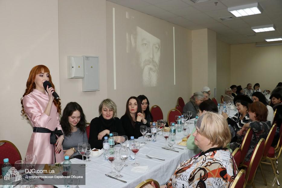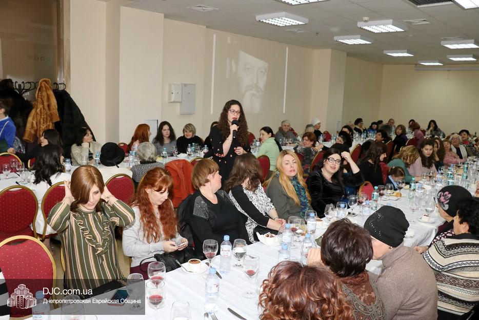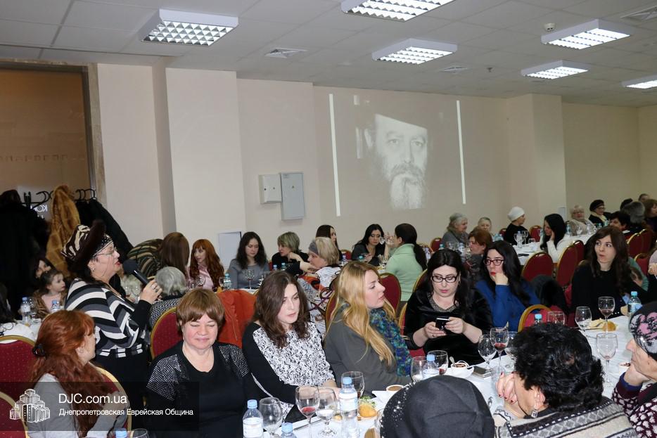 Главный женский фарбренген еврейской общины Днепра в честь Дня Юд Шват, 68-ой годовщины ухода из материального мира Шестого Ребе и 67-ой годовщины принятия титула «Главы поколения» Седьмым Любавическим Ребе Менахемом-Менделом Шнеерсоном, прошел в одном из залов Галереи крупнейшего в мире еврейского центра «Менора», а подготовила и провела его руководитель программы «Колель Тора для женщин» ребецн Шошанна Вебер.