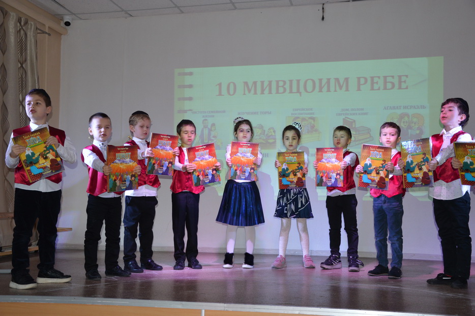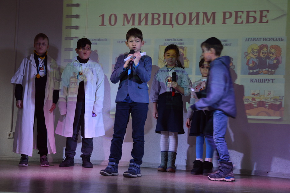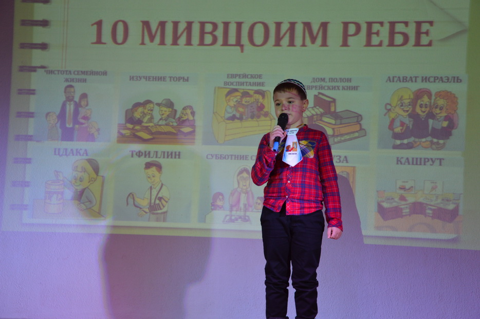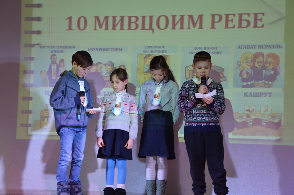Вначале ученики узнали, в чем особенность и важность дня Юд Шват для каждого из нас, о деятельности Седьмого Любавического Ребе Менахема-Мендела Шнеерсона, о связи с нашим Ребе. Основной темой праздника стало «10 мивцоим». Каждый класс младшей школы подготовил презентацию одной из мивцоим Ребе и креативно представили это на сцене в виде танца, репа, сценки или видео.