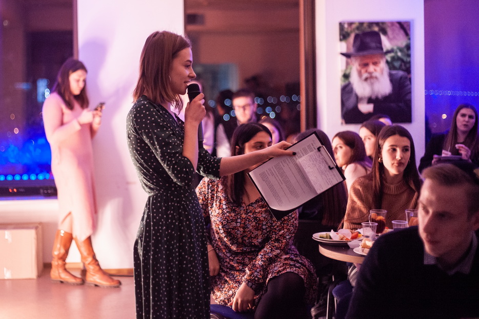 Студенческие мероприятия для ребят и девушек, участвующих в программе «Stars-Lubavitch», проходили в трех городах – Днепре, Киеве и Вене. Наоми Куц рассказала нам подробности о том, как проходила студенческая вечеринка «Stars-Lubavitch» в нашем городе: «Ребята поделились на 3 команды и посетили 3 станции, на которых прослушали уроки посвященные 10-му Швату. Запланированный урок принял очень креативную и нестандартную форму мини-квеста. Неизменные лекторы «Stars»: Йосеф-Исроэль Масаковский, Залман Бухиник и Малка Осипова дали максимально интересные и практичные знания. Чтобы закрепить пройденный материал, последним заданием было презентовать ключевые тезисы в необычной форме. Кто-то использовал для этого навыки актерского мастерства и продемонстрировал театральную сценку, а кто-то визуализировал все на плакате. Презентация пошла за легким фуршетом и каждая команда в конце вечера получила бутылку вина в подарок».