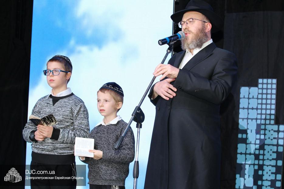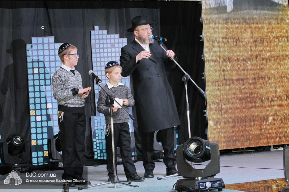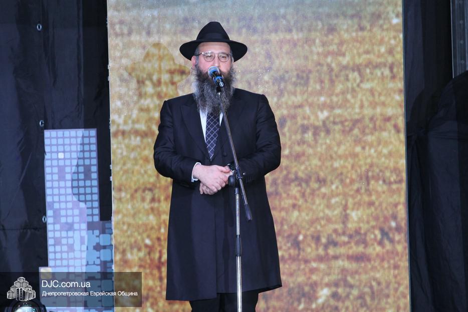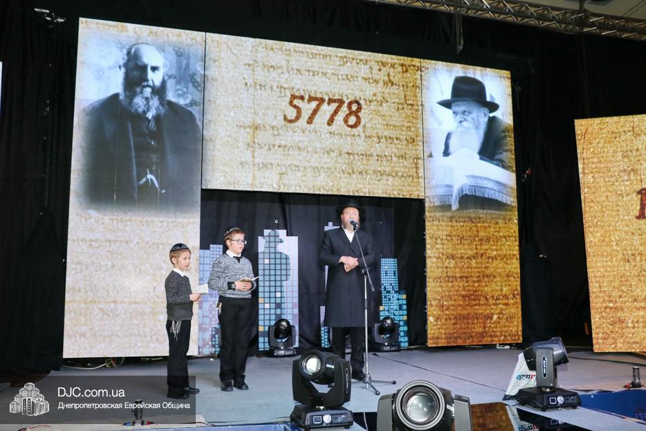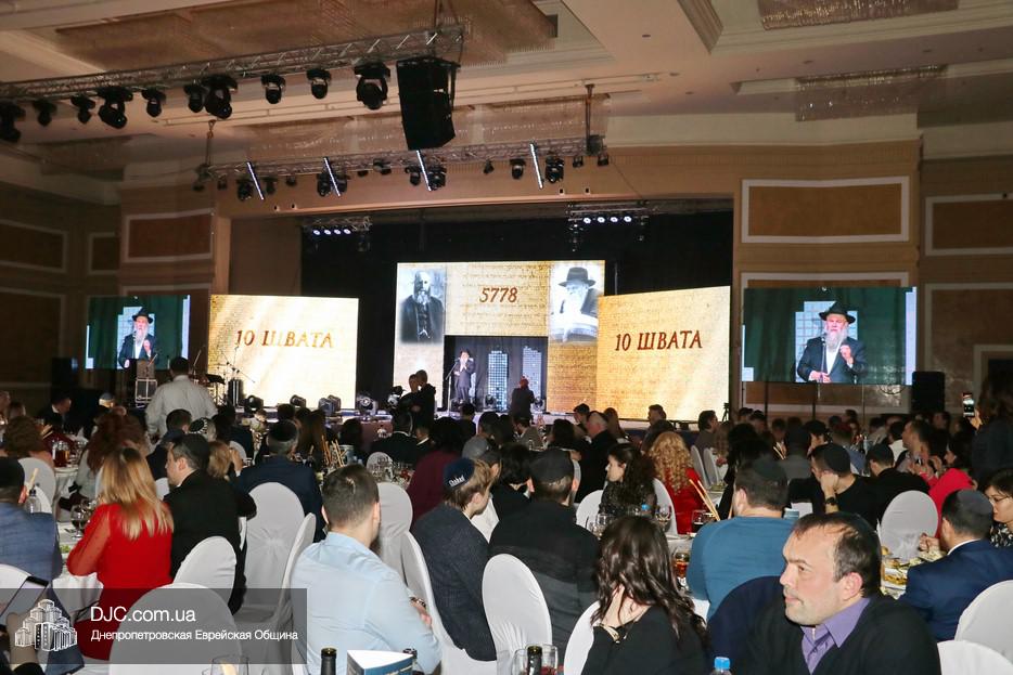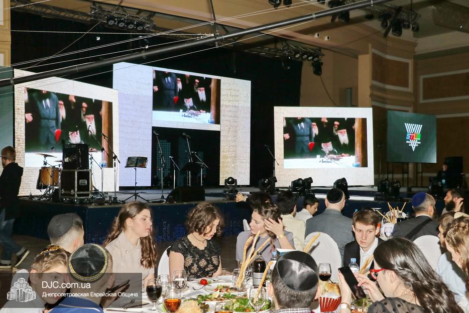 С большой речью перед собравшимися выступил Главный раввин Днепра и региона Шмуэль Каминецкий, весьма высоко оценивший деятельность STL и выстраиваемую ею систему неформального еврейского образования и воспитания. Затем к присутствовавшим обратился Президент МГПИ «Бейт Хана», Глава Совета Федерации еврейских общин Украины, член Попечительского Совета еврейской общины Днепра, раввин Меир Стамблер, а в завершение первой части дети, читавшие маамар, снова появились на сцене вместе с одним из руководителей проекта «Колель Тора», раввином Мойше Лейб Вебером, который и представил семилетнего Хаима Шолома Сегаля и двенадцатилетнего Йосефа Сегаля из Ришон леЦиона, семья которых, после смерти матери, оказалась в весьма сложном материальном положении, и которым он призвал материально помочь тех евреев Днепра, которые имеют для этого возможности. Мальчики на сцене прочитали кадиш по своей маме, а раввин Вебер отметил, что их отец подарит тому, кто сделает наибольшее пожертвование, доллар Ребе, который получила его теща. (В конце вечера было объявлено, что сумма сбора превысила 60 000 гривен, но кто сделал наибольшее пожертвование, и кто, таким образом, получит доллар Ребе, не сообщалось.)