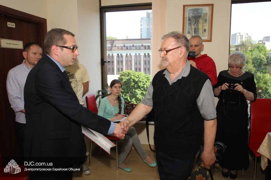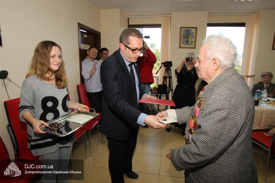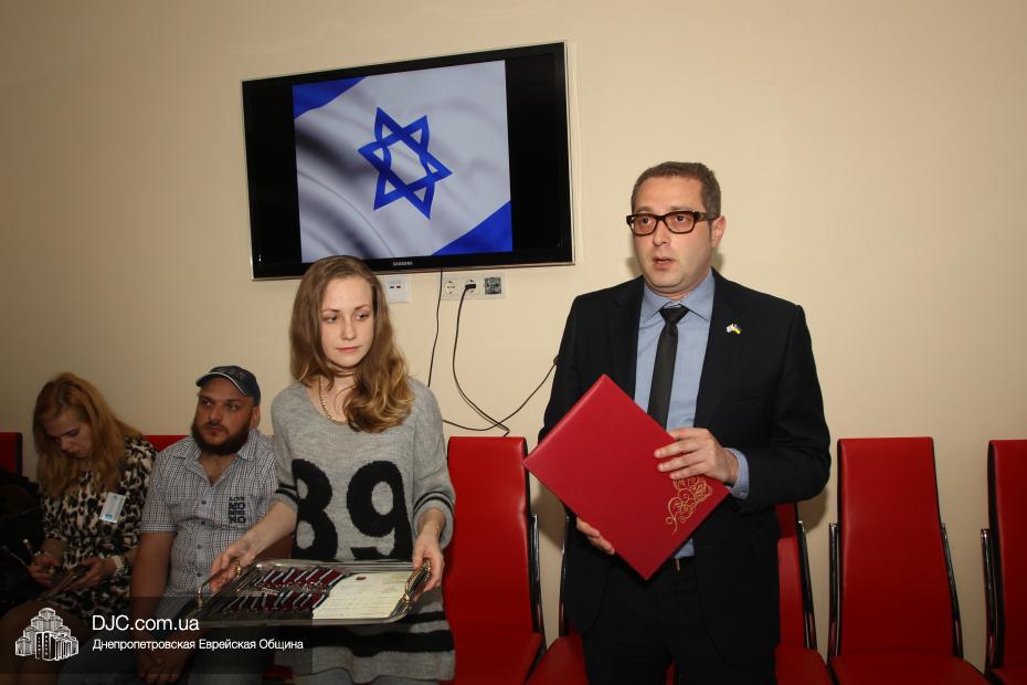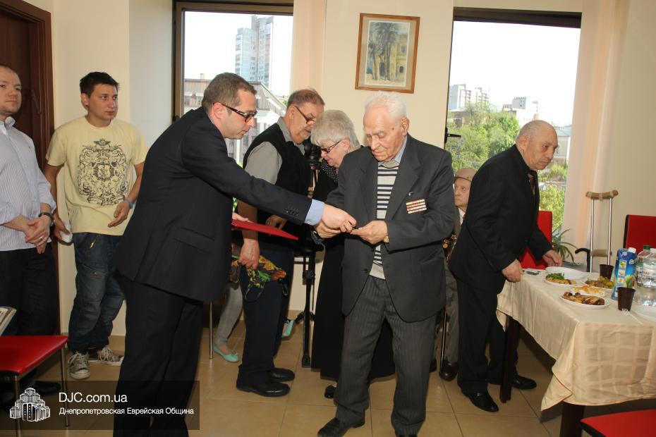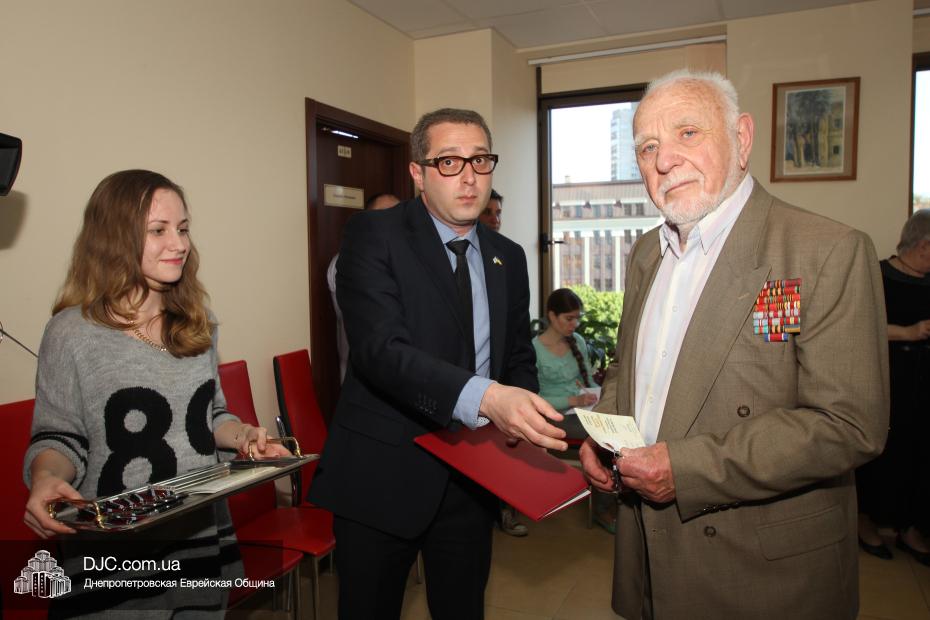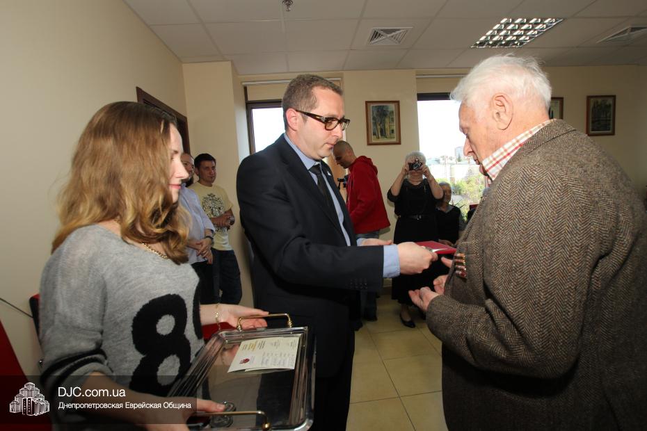Вручение медалей государства Израиль провел Вячеслав Смоткин, второй секретарь Посольства государства Израиль в Украине, директор Центра Культуры Израиля. Он выразил искреннюю благодарность от имени государства Израиль и от себя лично каждому, кто спас мир от нацизма, кто одержал Победу, и благодаря кому нацизм был повержен. Специальной памятной медалью, учрежденной государством Израиль совместно с израильским Союзом солдат и партизан, инвалидов войны с нацизмом, в Днепропетровске было награждено 14 человек. Многие из награжденных пришли сами, других представляли близкие родственники.