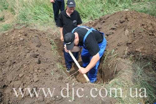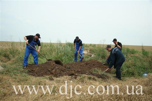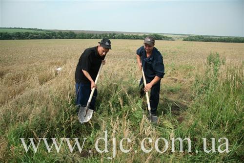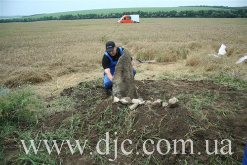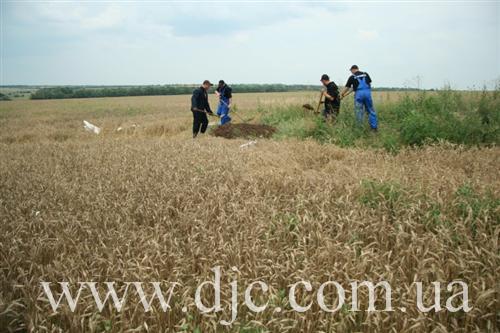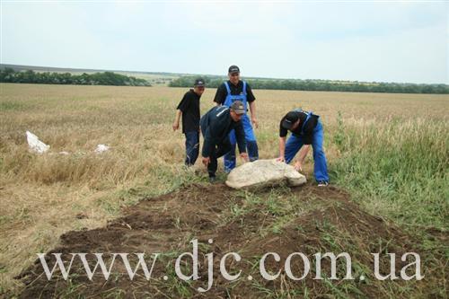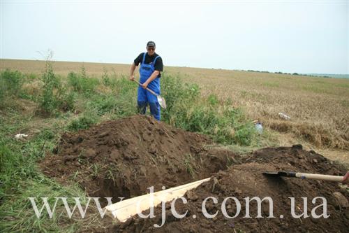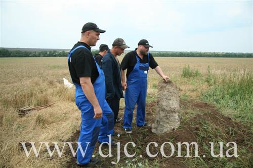 «Сейчас это просто поле, засеянное пшеницей, — рассказывает руководитель полевых исследований Алексей Косаревский, — но, как нами было установлено, в тридцатые годы здесь было еврейское кладбище. Этот район севернее Никополя является исторической областью еврейских сельскохозяйственных поселений, основанных в 20-30 годах ХХ века. Их возникновение связывают с деятельностью «АгроДжойнта» и «ЕвКомами», и хотя колонии в районе Никополя относятся к так называемому «Сталиндорфскому» району, они существенно отличаются от колоний, что располагались восточнее Кривого Рога. Так, например, поселение здесь не имели собственных названий, а отличались по номерам, от 1 до 25. То кладбище, которое мы обнаружили, служило местом захоронения для поселков 14, 5 и 8».
