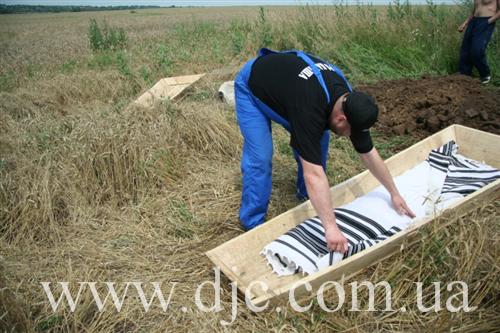 На следующий день к месту обнаружения останков выехала бригада днепропетровской «Хевра Кадиша», которая произвела захоронение человеческих останков со всеми почестями и с соблюдением всех законов, предписанной еврейской традицией. Учитывая, что эта земля является частью еврейского кладбища захоронение останков было произведено здесь же, на краю вспаханного поля, а могильный холм был увенчан одной из мацев, найденных здесь же.