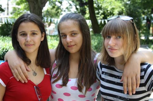 «Шалом! Нас зовут Настя, Маша и Соня. Мы все из Крыма — Настя из Симферополя, а Маша и Соня из Евпатории. Нам по 13 лет. Сегодня 4-ый день лагеря. Нам здесь очень нравится. Здесь веселая программа и замечательные мадрихи. Благодаря лагерю мы узнали друг друга и подружились, сплотились, нашли общие интересы. Маша больше всего любит бокер тов (утренняя зарядка), где мы учим новые танцы и интересные движения, Настя — вечерние мероприятия, а Соне по душам пришлись пеулот, где мы занимаемся с нашей группой, мадрихами, узнаем много нового об истории, традициях и культуре еврейского народа. Еще нам очень нравится то, что здесь вкусная, а главное кошерная еда, и веселая компания. Очень запомнился Кабалат Шабат.