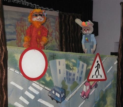 Хитрая Лиса, веселый Зайчик и строгий, но добрый Милиционер, в занимательной форме рассказали малышам о правилах дорожного движения, прежде всего о тех, которые нужны маленьким пешеходам. Благодаря такой форме подачи дети смогут не только сами правильно себя вести на улицах города, но и, возможно, смогут передать эти знания своим родителям.
