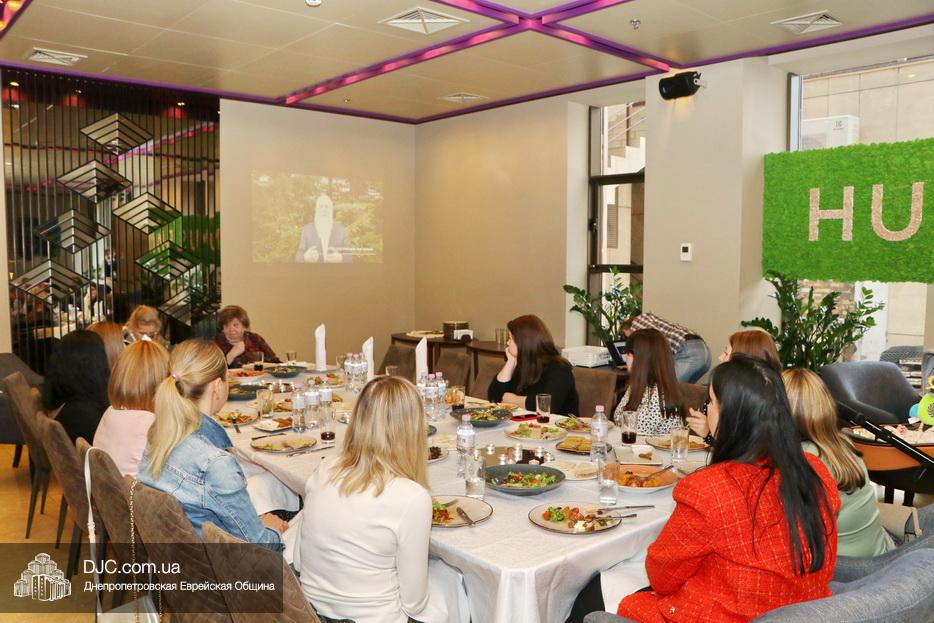 Программа мероприятия была очень насыщенной и комфортной, горели свечи, была красивая фоновая музыка, нигуним и очень вкусная кошерная трапеза. Мероприятие началось с видео Главы нашего поколения Седьмого Любавического Ребе Менахема-Мендела Шнеерсона, затем кратко Рива (Римма Александровна) Марголина рассказала о недельной главе. Также было уделено особое внимание высказываниям Главного раввина Днепра и региона Шмуэля Каминецкого о воспитании ребенка и его месте в еврейской семье.