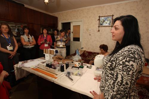 Затем участники делегации разбились на микрогруппы, чтобы своими глазами увидеть успешные женские бизнесы, работающие в Днепропетровске, спектр деятельности которых весьма широк. Здесь и розничная торговля, например, детскими колясками на базаре, и производственная деятельность, например, пошив детских костюмов, в том числе и карнавальных, и самоокупаемые сервисы для еврейской общины, такие как магазин «Иудаика», обеспечивающий потребности евреев в религиозной атрибутике и еврейских книгах.