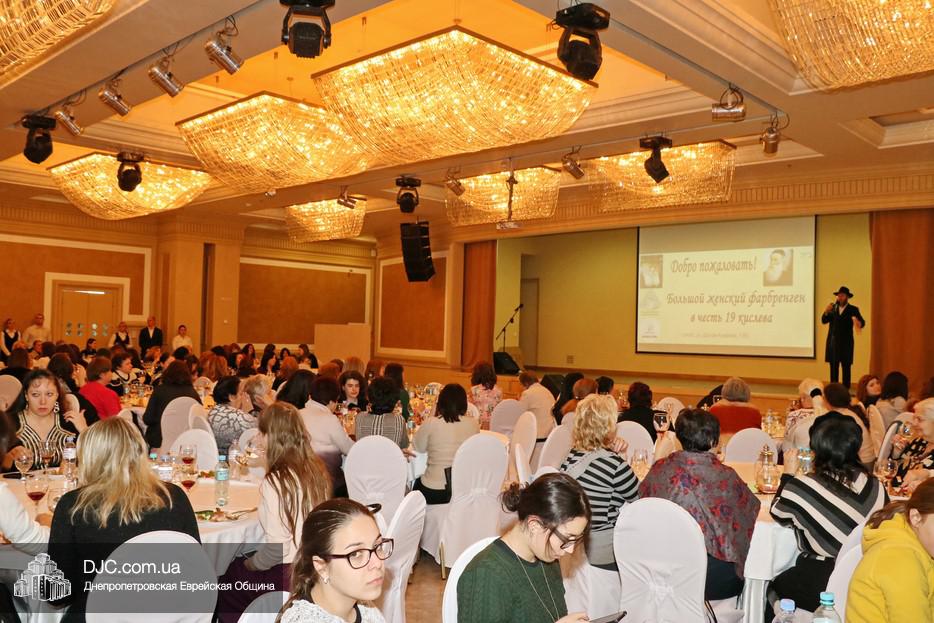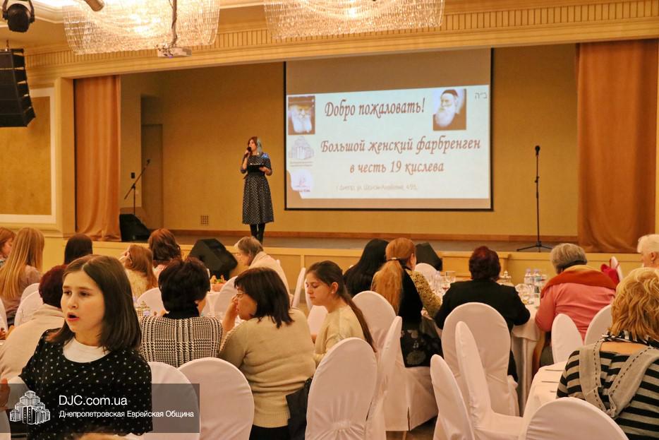 Большой женский фарбренген в честь Нового года Хасидизма состоялся в зале торжеств «Menorah Ballroom» крупнейшего в мире еврейского центра «Менора». В фарбренгене приняло участие более двухсот пятидесяти еврейских женщин Днепра.