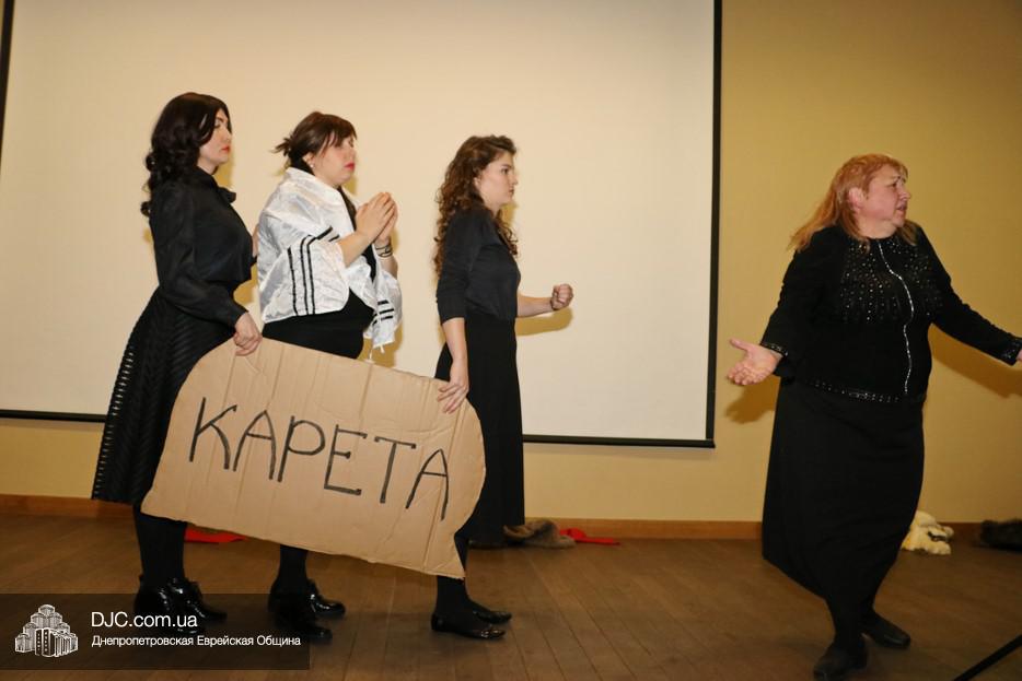Далее выступил «Театр хасидских дам» с постановкой, рассказывающей всю историю от ареста и до чудесного освобождения основателя Любавического движения рабби Шнеур-Залмана из Ляд (Альтер Ребе).