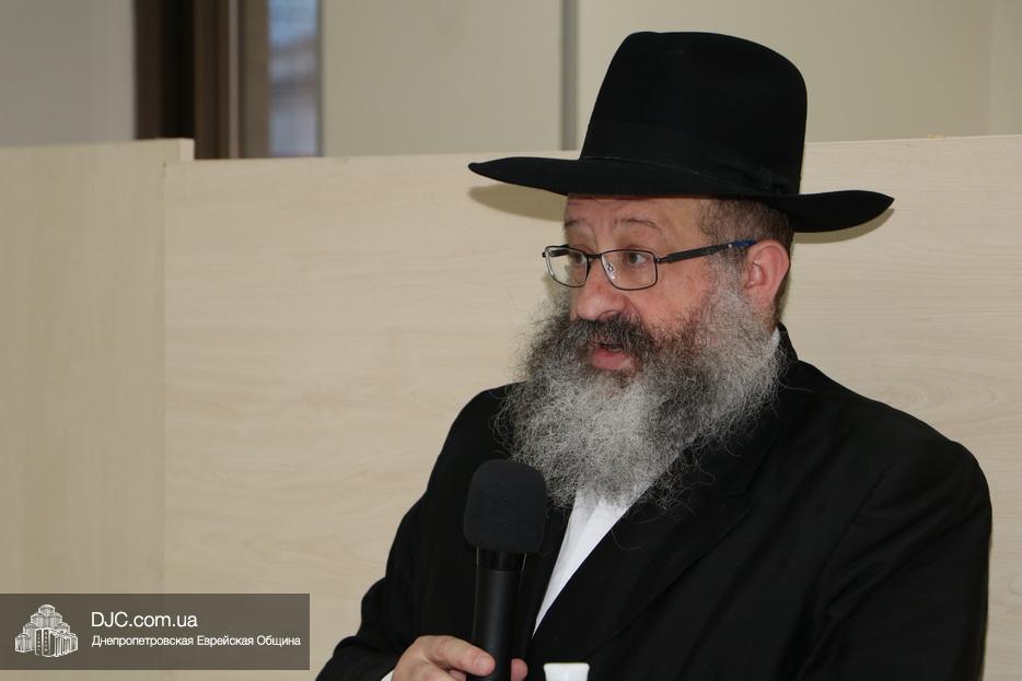 Мероприятие прошло в зале «На Троицкой» и его специальным гостем стал Главный раввин города Шеффилд (Великобритания) Йонатан Хаим Голомб, который выразил глубокую благодарность Еврейской общине Днепра и ее лидерам раввину Шмуэлю Каминецкому и ребецн Хане Каминецкой, которые непросто создали потрясающую общину, но и много сделали для семьи Голомб – поддержали дочь раввина Голомба, Шейну, когда она проходила посланническую миссию в Днепре, а затем оказали очень большую поддержку в подготовке и проведении ее свадьбы, недавно состоявшейся в «Меноре» и которой наш сайт подробно писал здесь — https://www.djc.com.ua/news/view/new/?id=24950&lang=ru.
