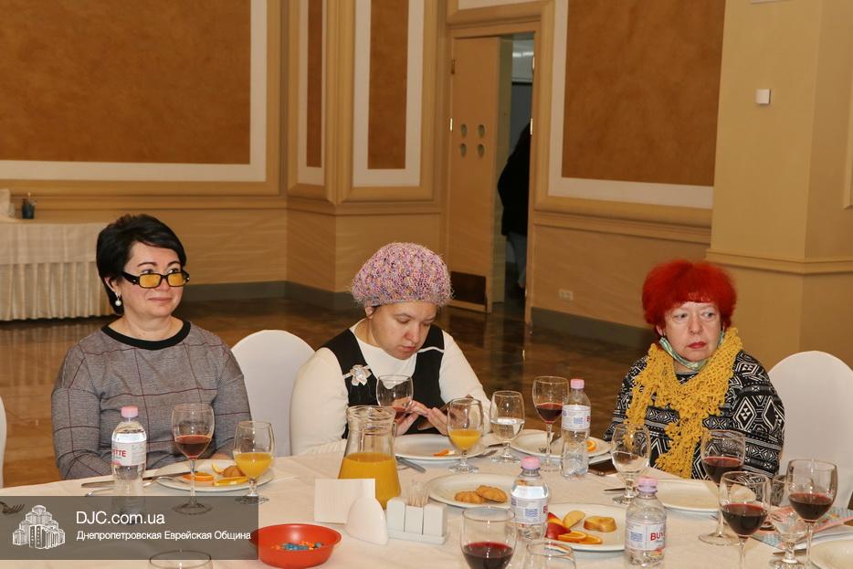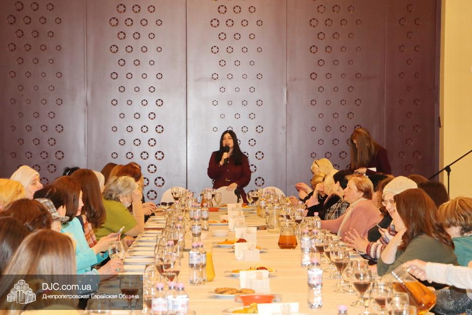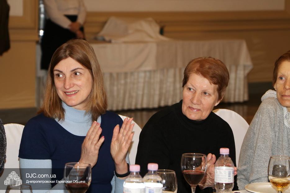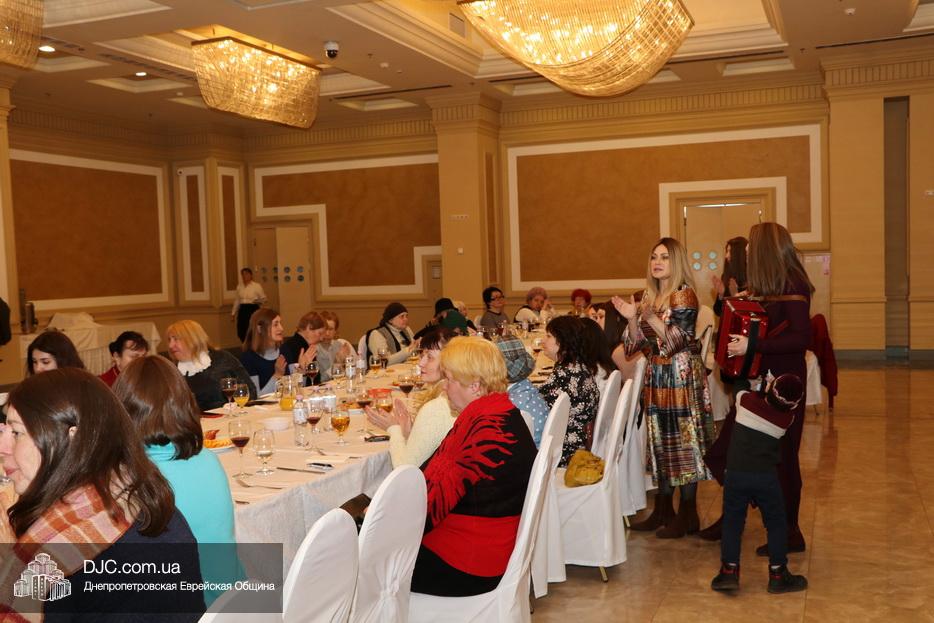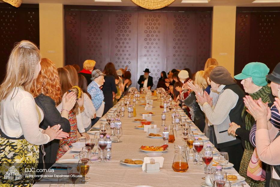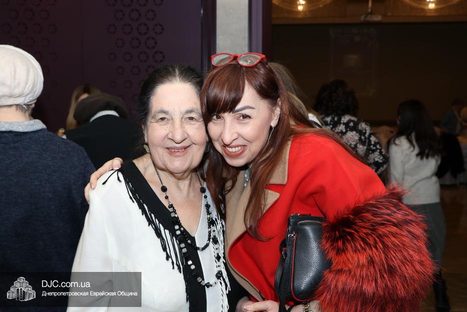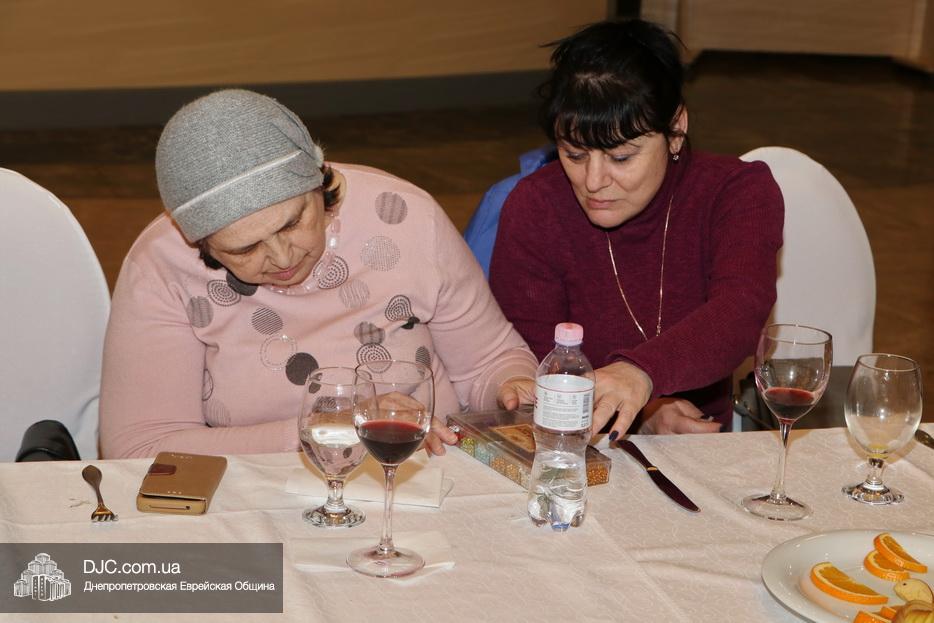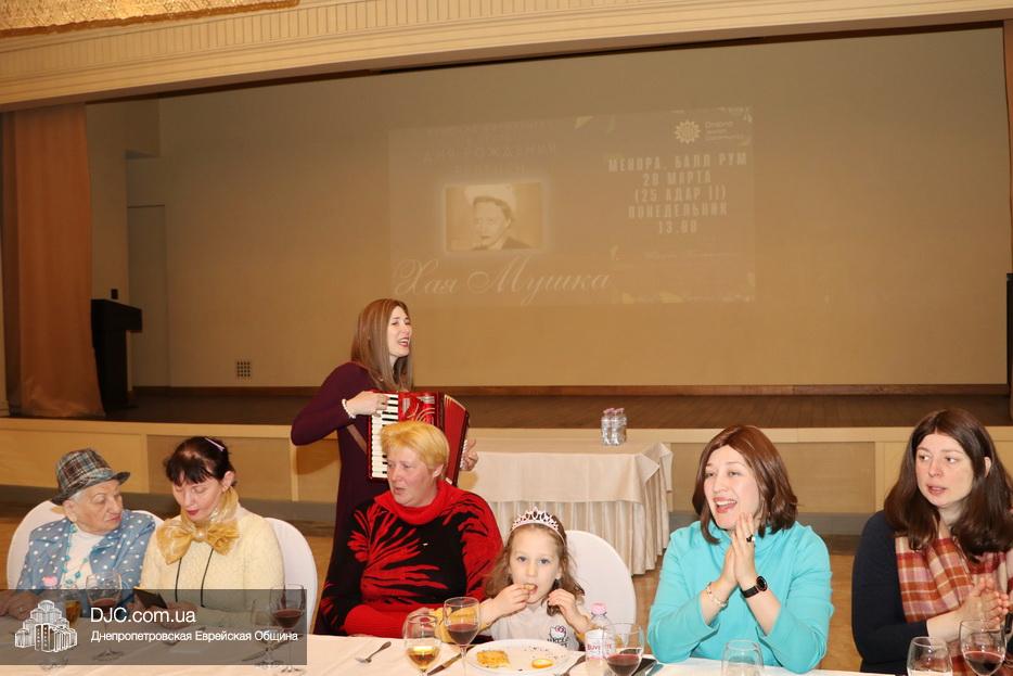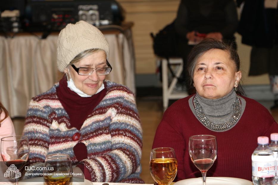 Затем женщины пели нигуны под аккомпанемент Ципоры Нахшон, поздравили одну из активисток возрождения еврейской жизни в Днепре Жанну Львовну Летичевскую, которой в этот день исполнилось 85 лет, делали «лехаим» и угощались разнообразными вкусностями.