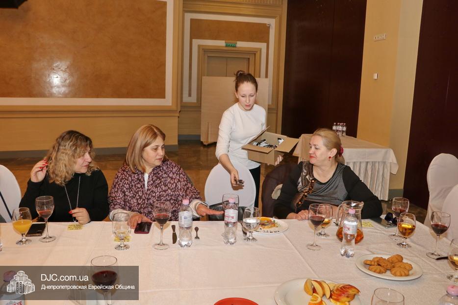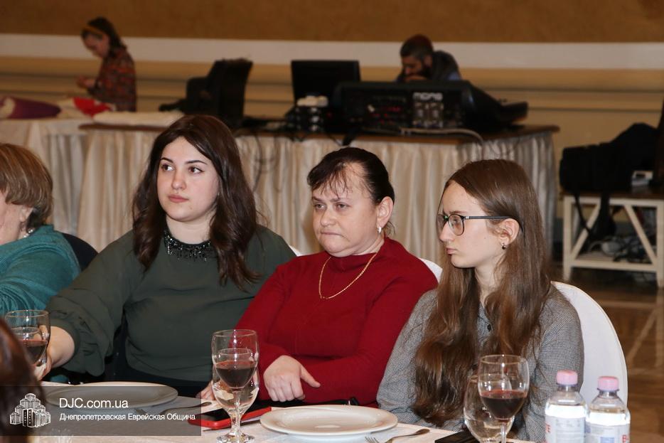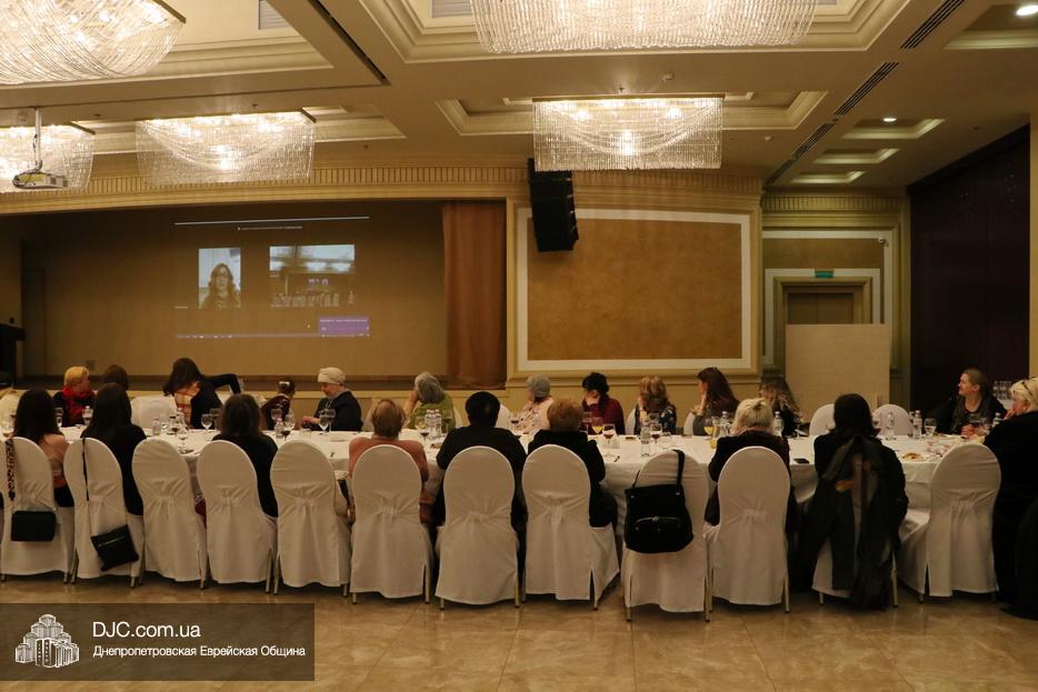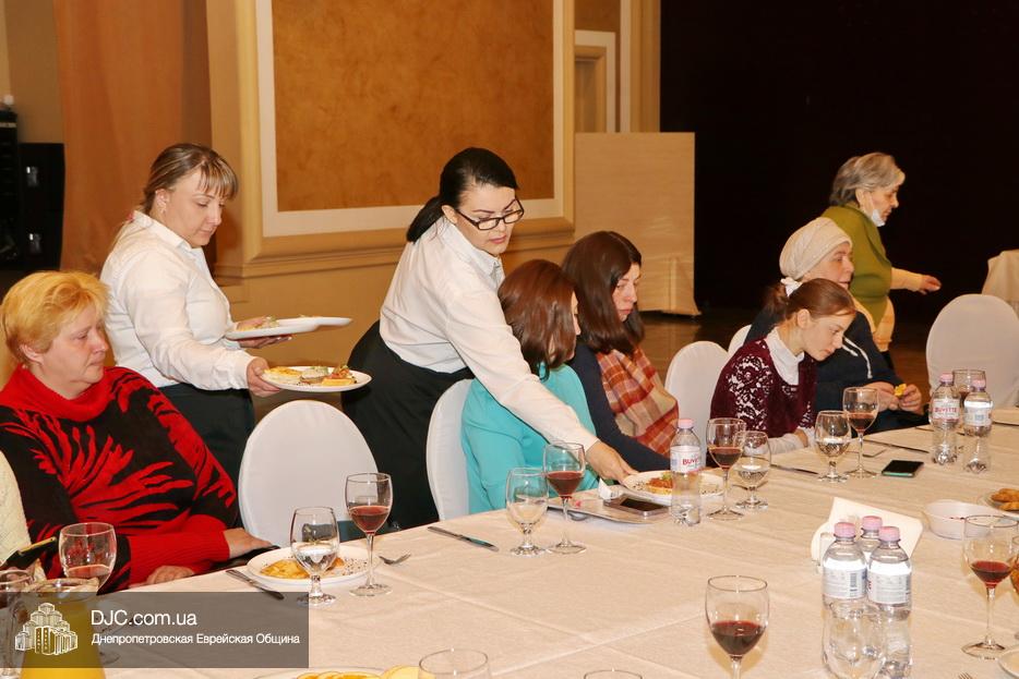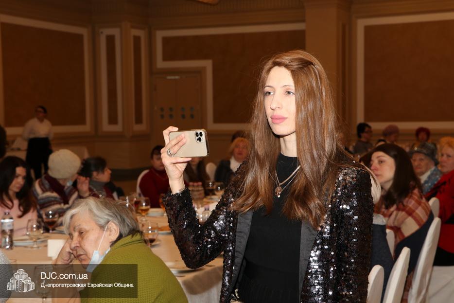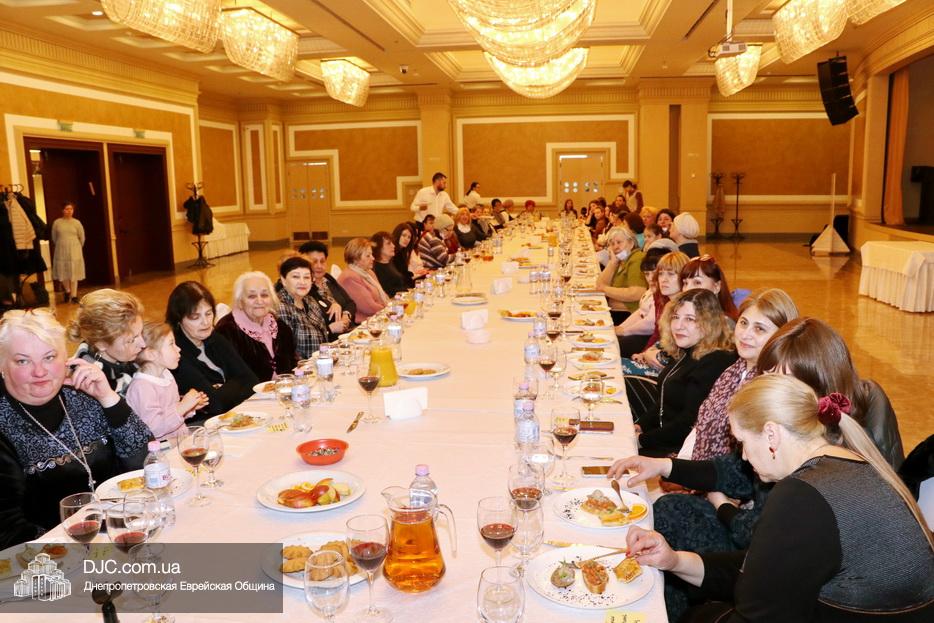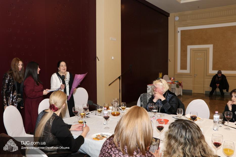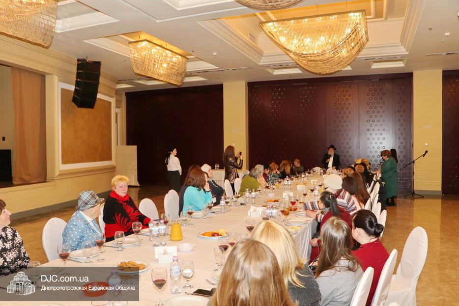 Затем женщины пели нигуны под аккомпанемент Ципоры Нахшон, поздравили одну из активисток возрождения еврейской жизни в Днепре Жанну Львовну Летичевскую, которой в этот день исполнилось 85 лет, делали «лехаим» и угощались разнообразными вкусностями.