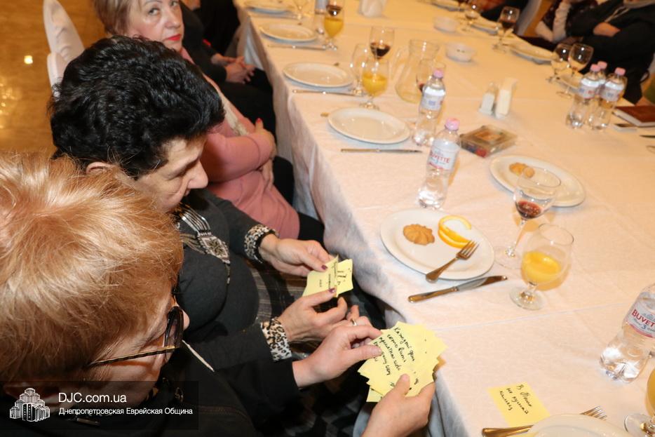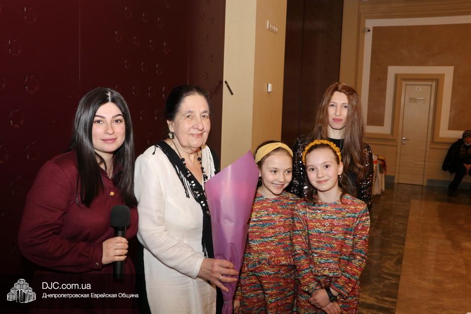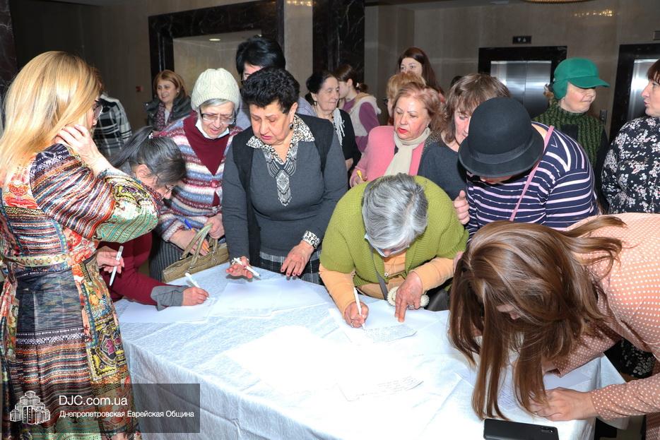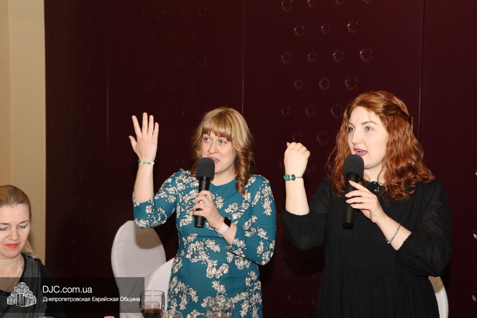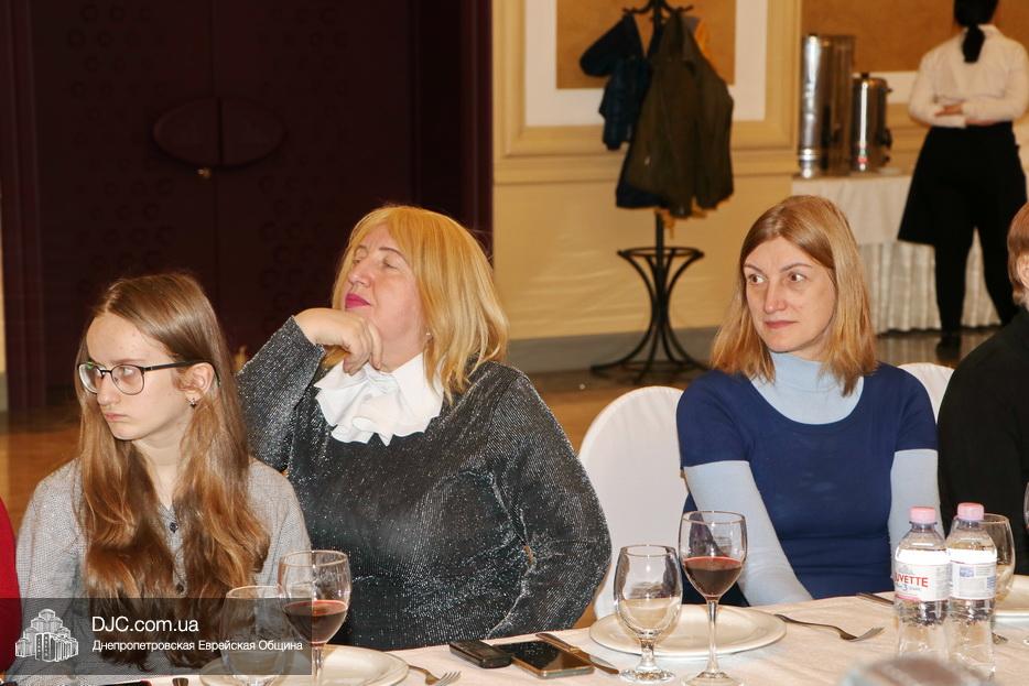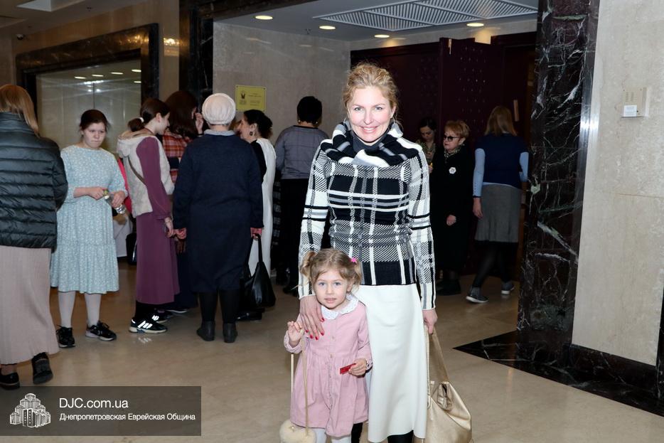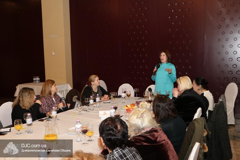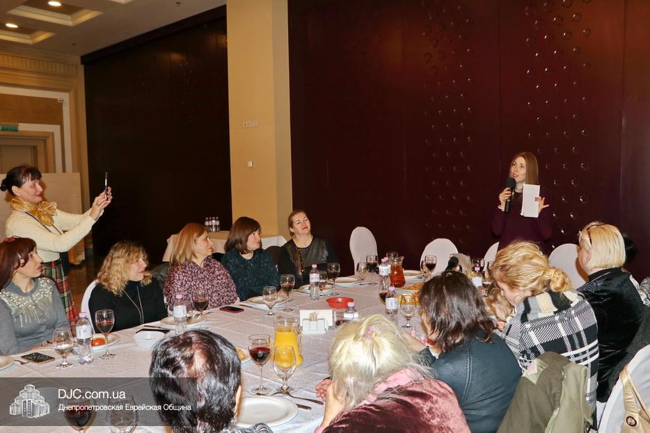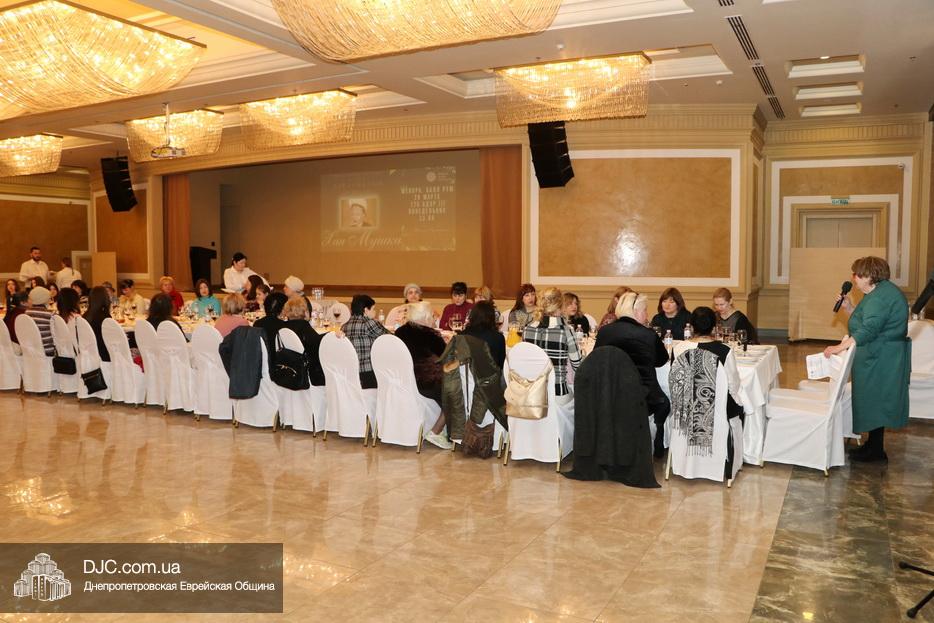 Затем женщины пели нигуны под аккомпанемент Ципоры Нахшон, поздравили одну из активисток возрождения еврейской жизни в Днепре Жанну Львовну Летичевскую, которой в этот день исполнилось 85 лет, делали «лехаим» и угощались разнообразными вкусностями.