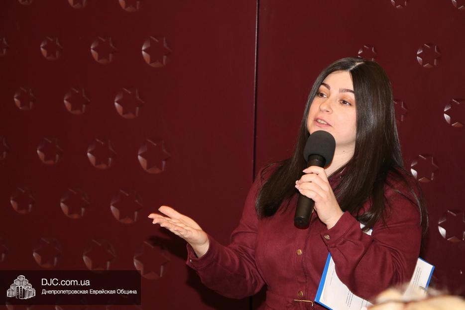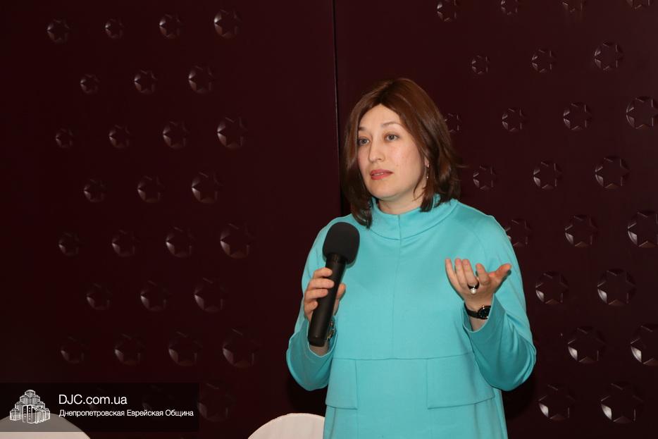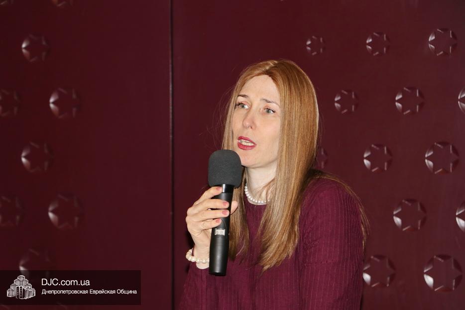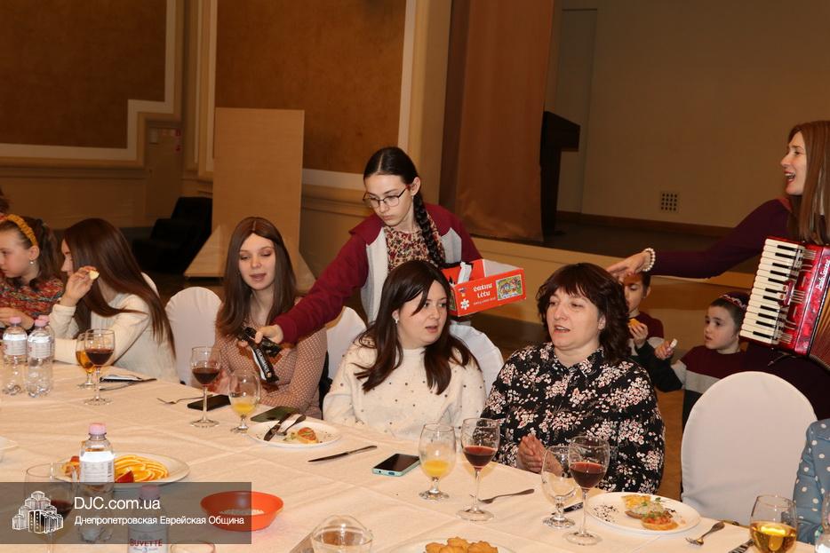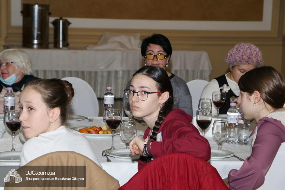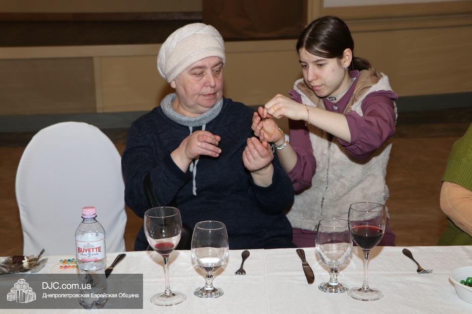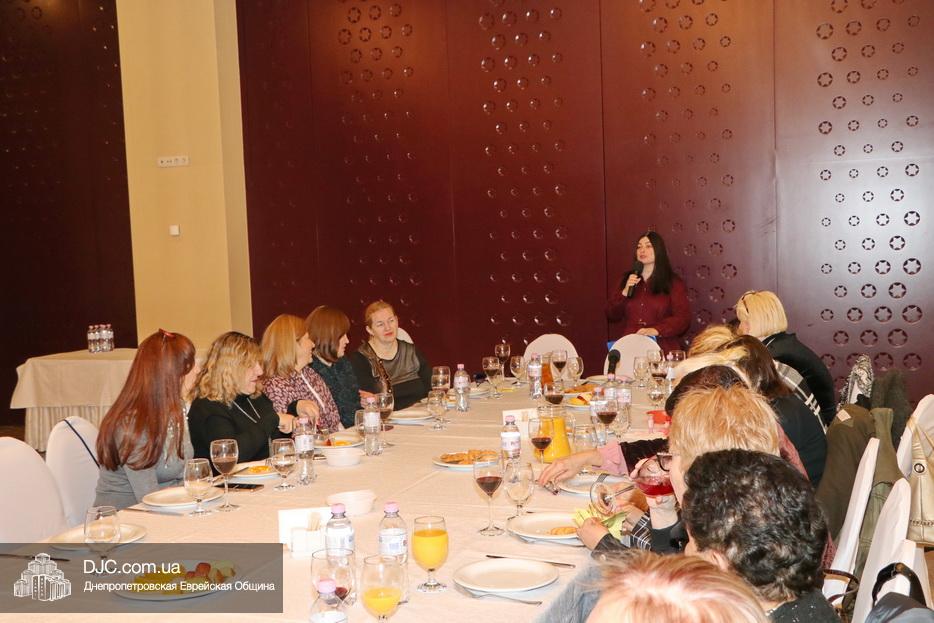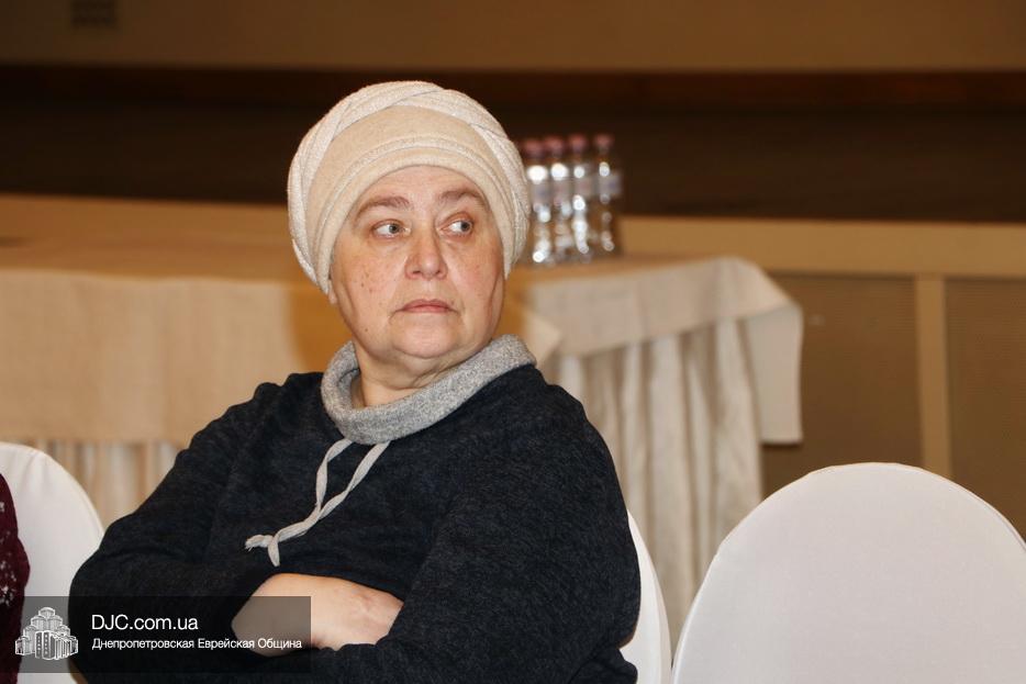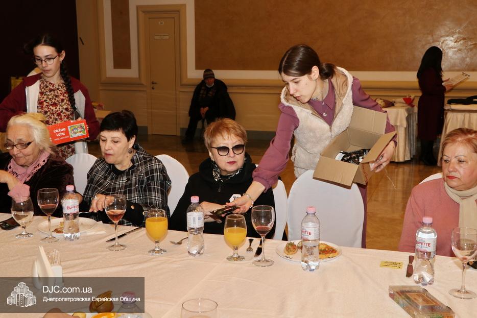 Затем женщины пели нигуны под аккомпанемент Ципоры Нахшон, поздравили одну из активисток возрождения еврейской жизни в Днепре Жанну Львовну Летичевскую, которой в этот день исполнилось 85 лет, делали «лехаим» и угощались разнообразными вкусностями.