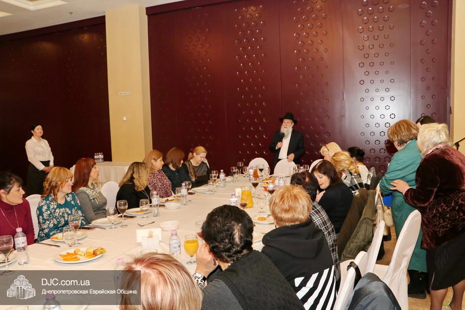 Особым гостем фарбренгена стал Главный раввин Днепра и региона Шмуэль Каминецкий, который рассказал женщинам о дне, в который родилась очень скромная и величественная праведная ребецн Хая-Мушка Шнеерсон и ее значении в жизни еврейского народа, и о том, что, несмотря на все трудности, надо полноценно готовится к приближающемуся празднику Песах.