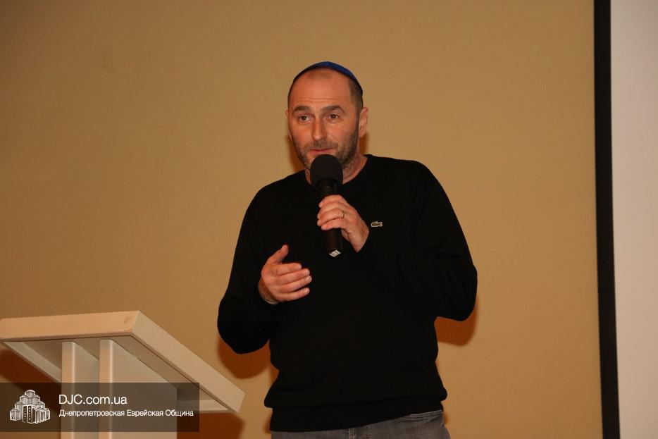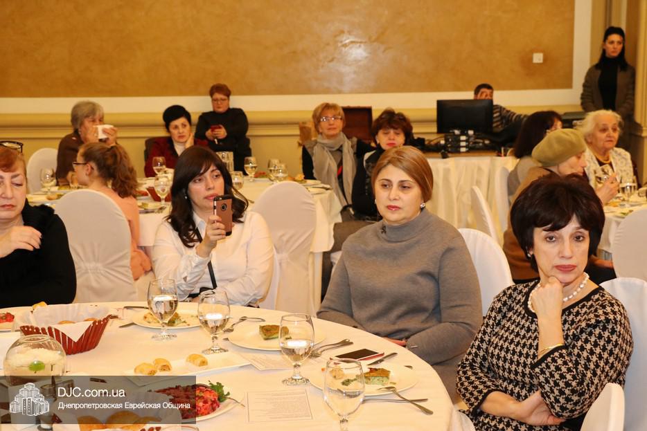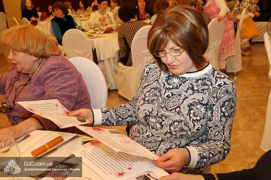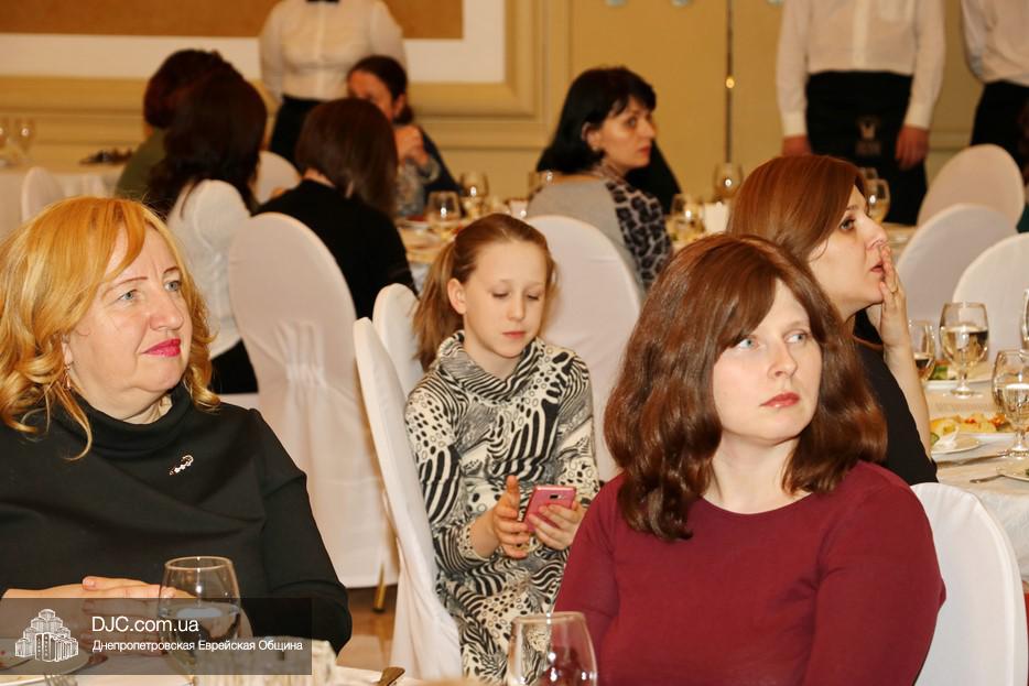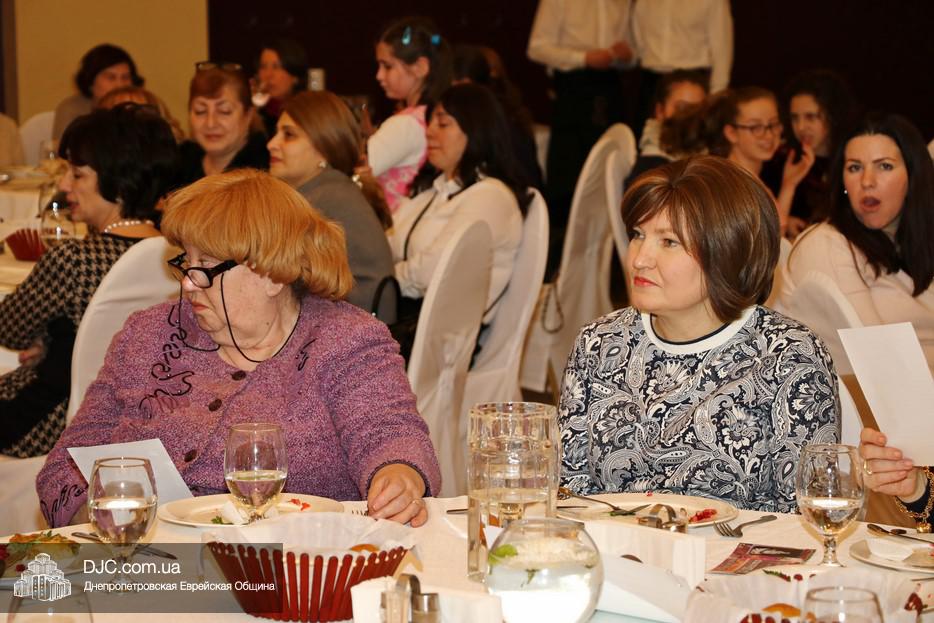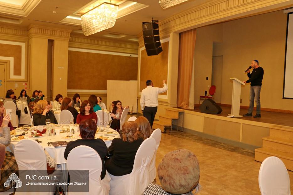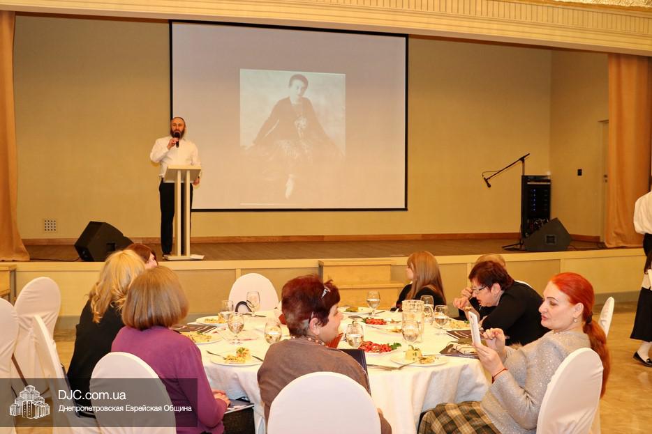 Еще одним гостем праздника стал директор еврейской общины Днепра Зелиг Брез, который рассказал о своем видении сути шабатнего гимна восхваления достойной жены «Эшет Хаиль», в которой мужчина отдает должное хозяйке дома. Далее слово было предоставлено члену Попечительского Совета еврейской общины Днепра господину Хаиму Вульфу Эйдельману, которые спел для всех присутствовавших женщин песню «Темная ночь» и поделился своими личными историями.