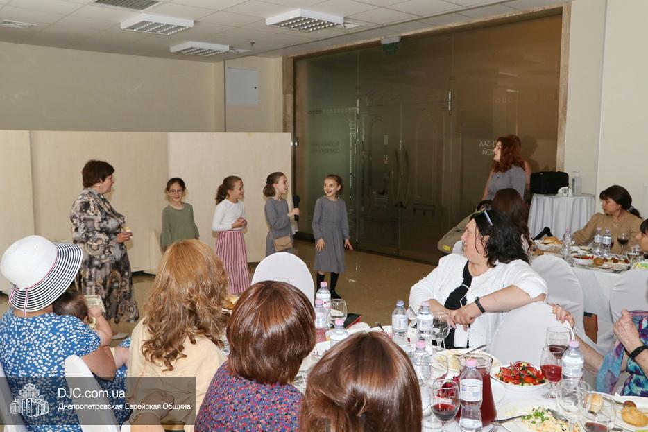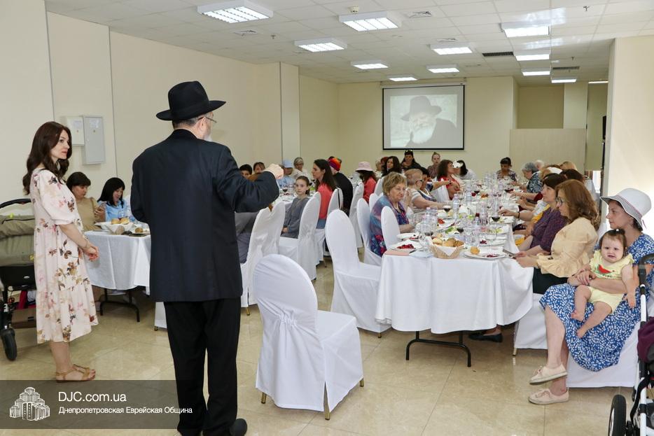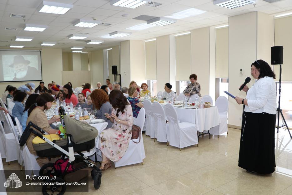 Активистка женского движения еврейской общины Днепра Авия Славина провела урок по недельной главе Торы, затем Вероника Шлаина и Татьяна Никифорова провели игру на знание биографии рабби Леви-Ицхака Шнеерсона и его супруги ребецн Ханы. Далее выступила Оснат Либерман, которая рассказала о важности дня йорцайт как для души, покинувшей материальный мир, так и для тех, кто делает все возможное для ее поднятия, и рассказала свою любимую майсу. Приятной неожиданностью стало выступление девочек, которые прочитали 12 псуким.