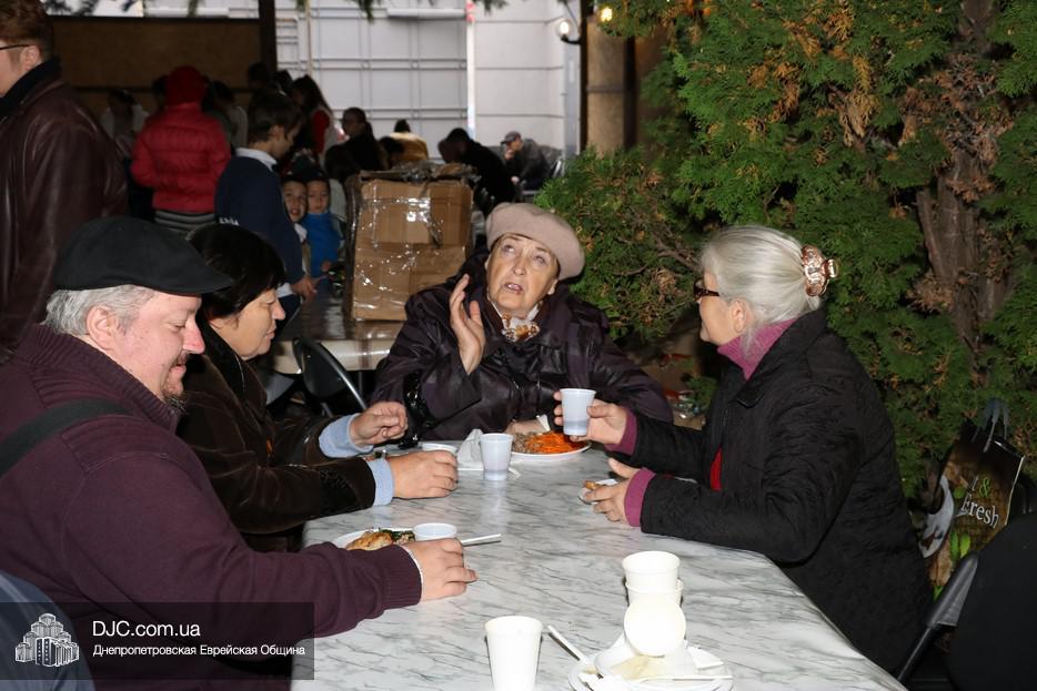 С самого начала праздника Суккот в шалашах, как построенных еврейской общиной Днепра, так и ее активистами, кипит жизнь и проходят различные мероприятия. Тысячи людей исполняют заповеди о пребывании в сукке и «четырех растениях».