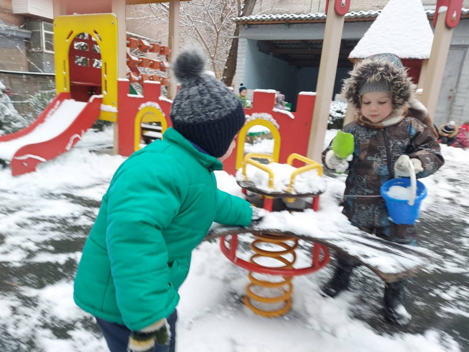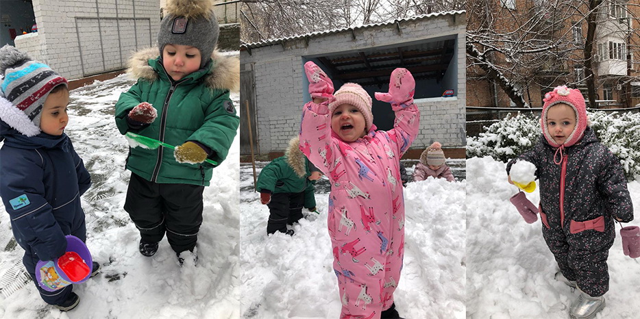 Кроме большой радости от снега, выходя на прогулку, мы с детьми наблюдаем за птицами, деревьями, небом, учимся определять состояние погоды, проводим различные опыты со снегом. Малыши получают много новых впечатлений и знаний об окружающем их мире».