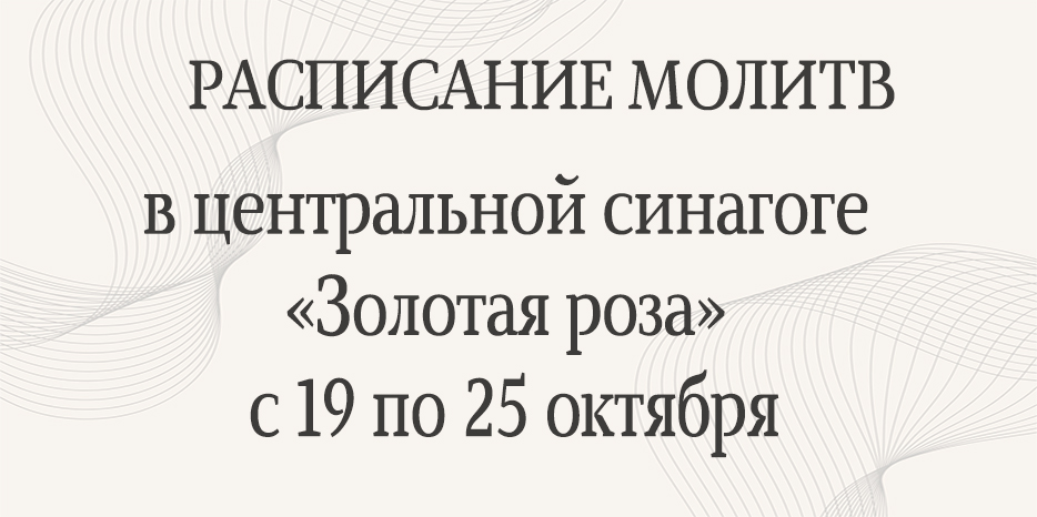 Центральная синагога «Золотая роза» информирует о времени начала молитв на период с 19 по 25 октября, которые будут проходить в главном молитвенном зале. Адрес синагоги: улица Шолом-Алейхема, 4.