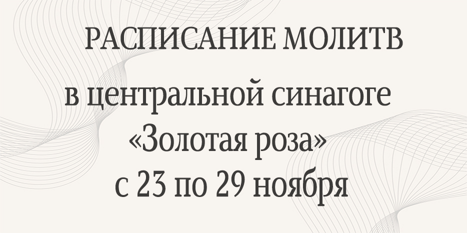 Центральная синагога «Золотая роза» информирует о времени начала молитв на период с 23 по 29 ноября, которые будут проходить в главном молитвенном зале. Адрес синагоги: улица Шолом-Алейхема, 4.