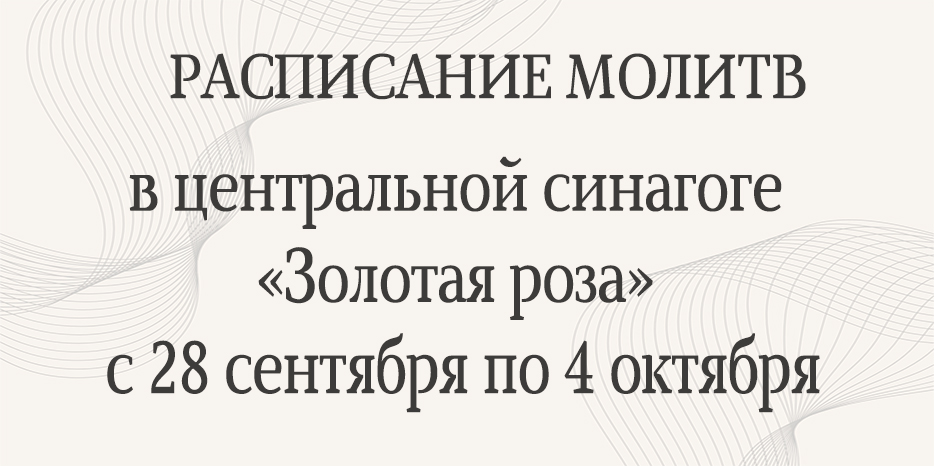 Центральная синагога «Золотая роза» информирует о времени начала молитв на период с 28 сентября по 4 октября, которые будут проходить в главном молитвенном зале. Адрес синагоги: улица Шолом-Алейхема, 4.