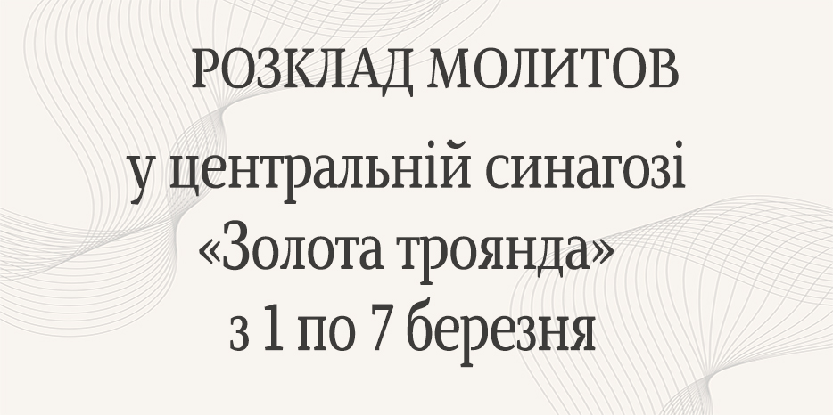 Центральна синагога «Золота Троянда» повідомляє про час початку молитов на період з 1 по 7 березня, які відбуватимуться в головному молитовному залі. Адреса синагоги: вулиця Шолом-Алейхема, 4.