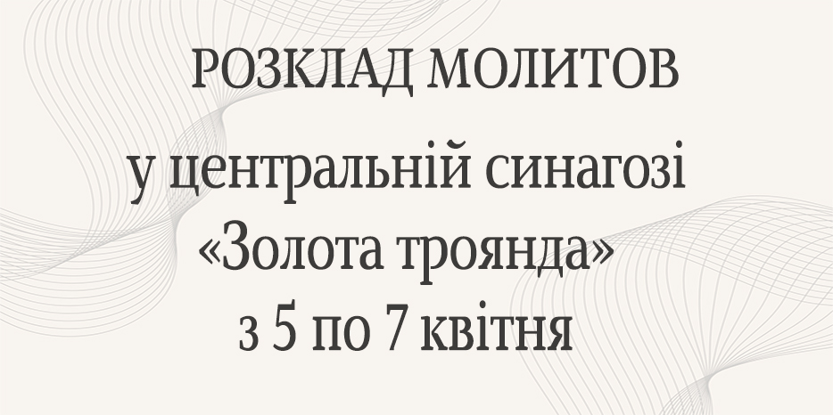 Центральна синагога «Золота Троянда» повідомляє про час початку молитов на період з 5 по 7 квітня, які відбуватимуться в головному молитовному залі. Адреса синагоги: вулиця Шолом-Алейхема, 4.