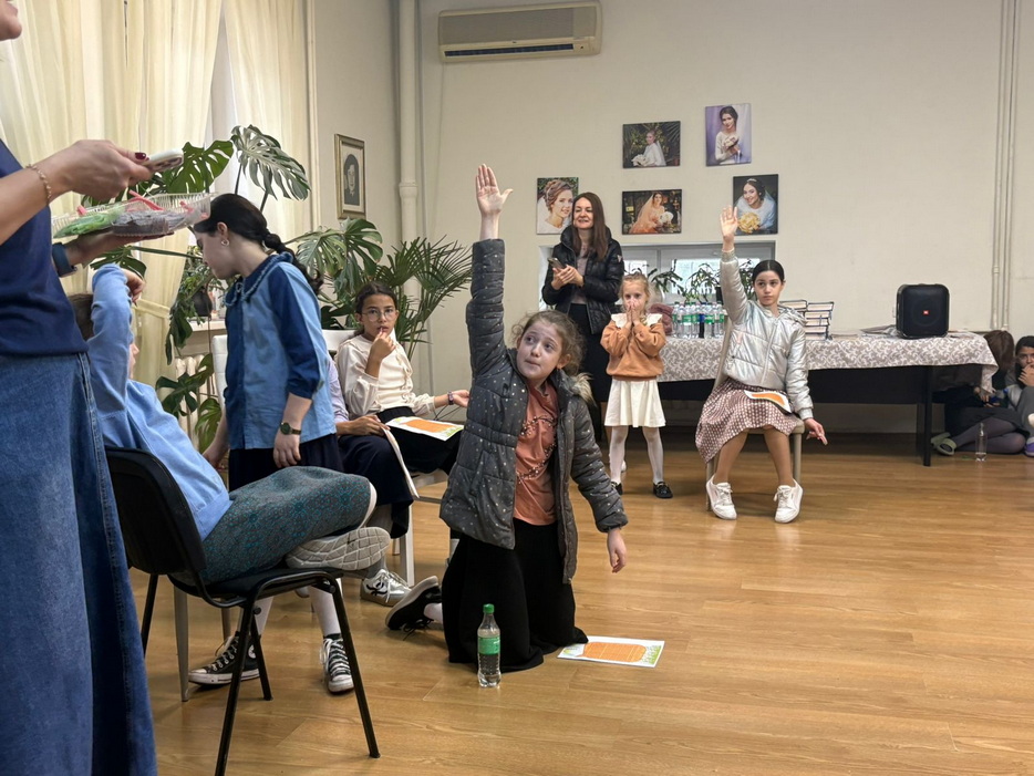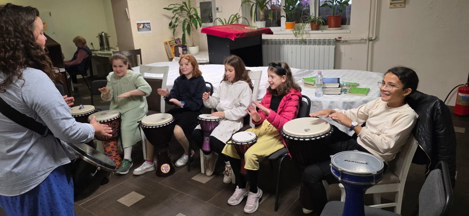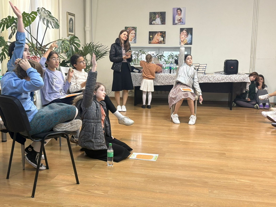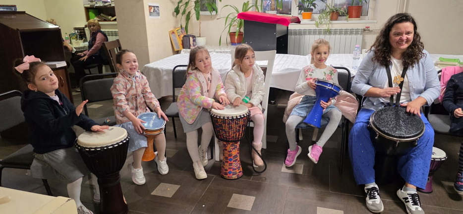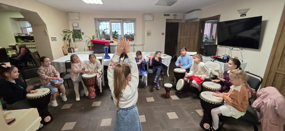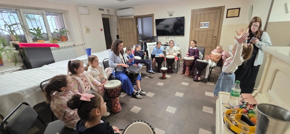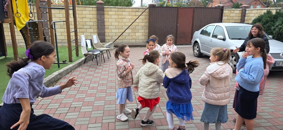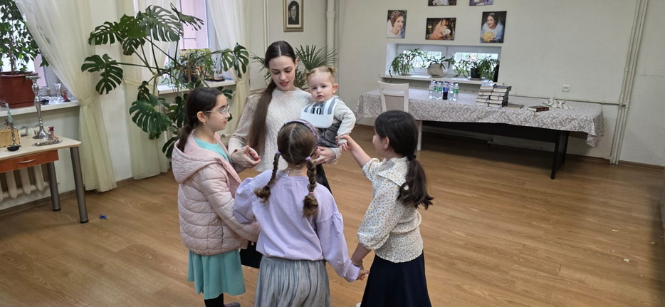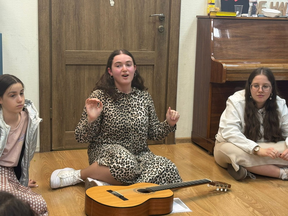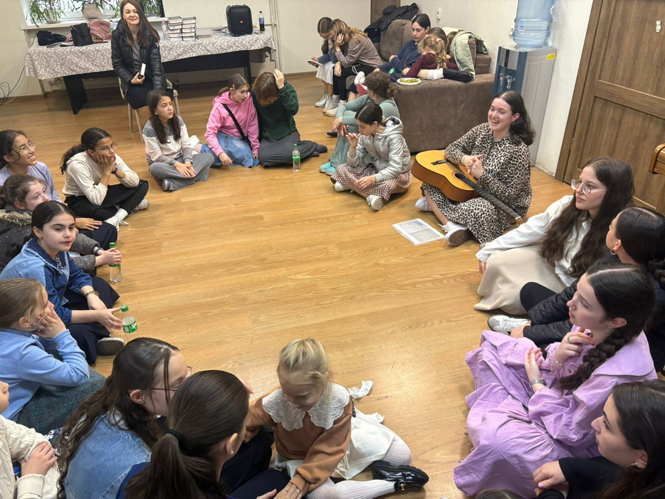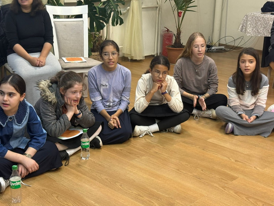 У першій половині дня пансіон відвідали молодші вихованки, і для них після молитви та трапези в суккі були організовані станції, на одній з яких дівчата грали на екзотичних барабанах «дарбуках», танцювали «Сімхат бе аШоева» й брали участь у грі-вікторині на знання цікавих міцвот, пов’язаних зі святом Суккот.