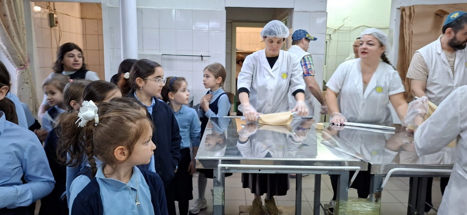 У махоні «Хая-Мушка», провідному навчальному закладі Єврейської громади Дніпра для дівчат, відбулася виїзна екскурсія, в рамках якої учениці з першого по четвертий клас відвідали мацепекарню, щоб на практиці познайомитися з процесом виготовлення маци, який вони раніше вивчали на уроках традицій.